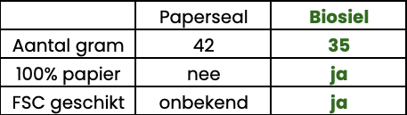 Zie de tabel hiernaast voor de verschillen. Nic. Oud staat voor 100% duurzaam verzenden en kiest daarom voor Biosiel®.